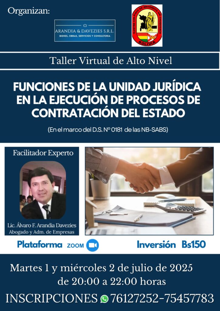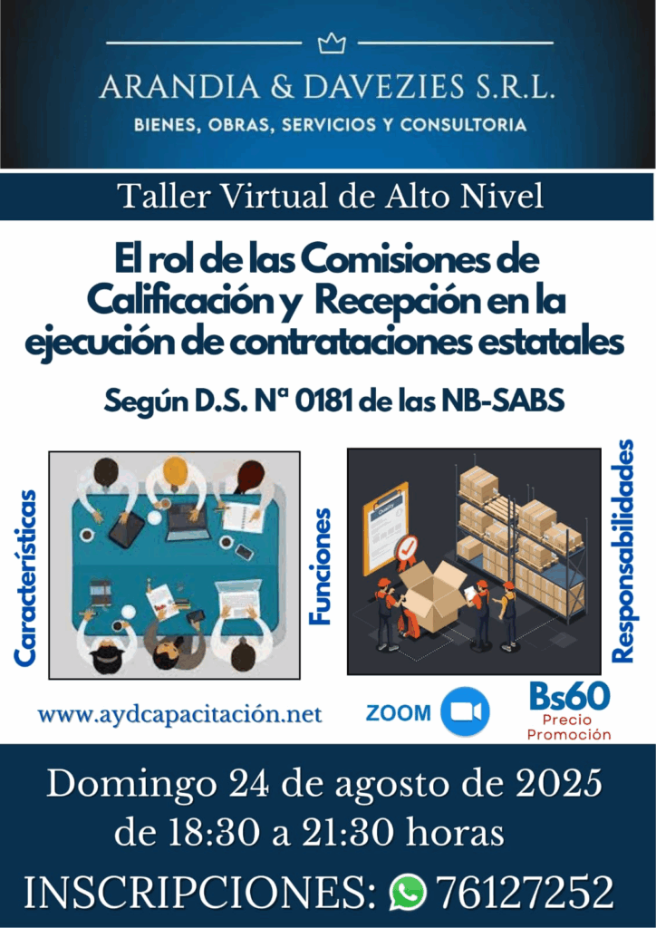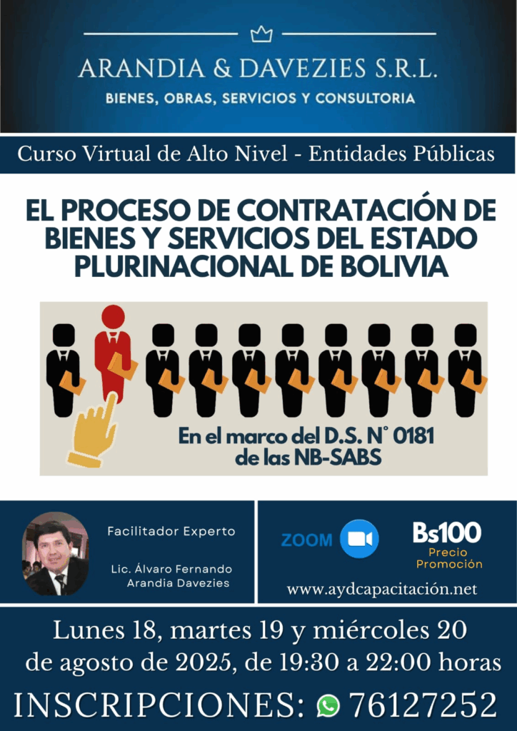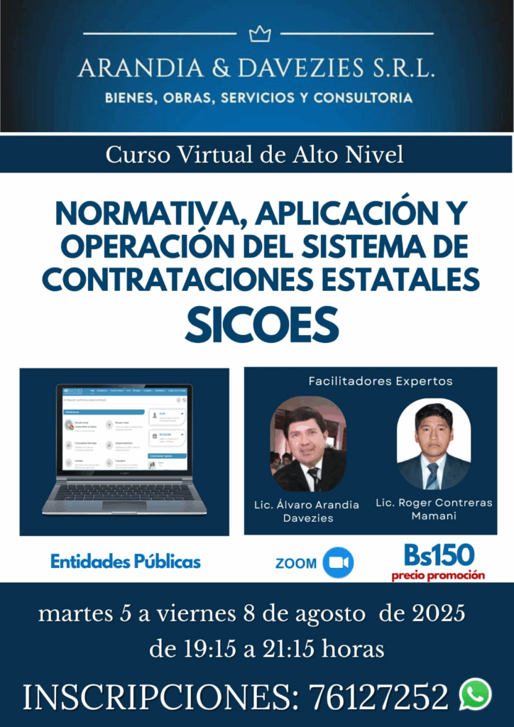 Nuestra empresa ARANDIA & DAVEZIES S.R.L. BIENES, OBRAS, SERVICIOS Y CONSULTORÍA junto a la CÁMARA DE INDUSTRIA Y COMERCIO DE CHUQUISACA, llevamos adelante las “PRIMERAS JORNADAS DE FORMACIÓN EN CONTRATACIONES ESTATALES – BOLIVIA 2025”, con la inscripción de 50 servidores públicos de todo el país. El evento se llevó a cabo de manera virtual del