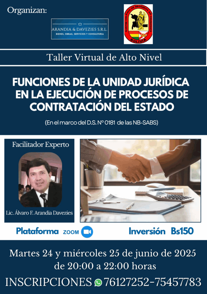 TALLER VIRTUAL DE ALTO NIVEL: FUNCIONES DE LA UNIDAD JURÍDICA EN LA EJECUCIÓN DE PROCESOS DE CONTRATACIÓN DEL ESTADO